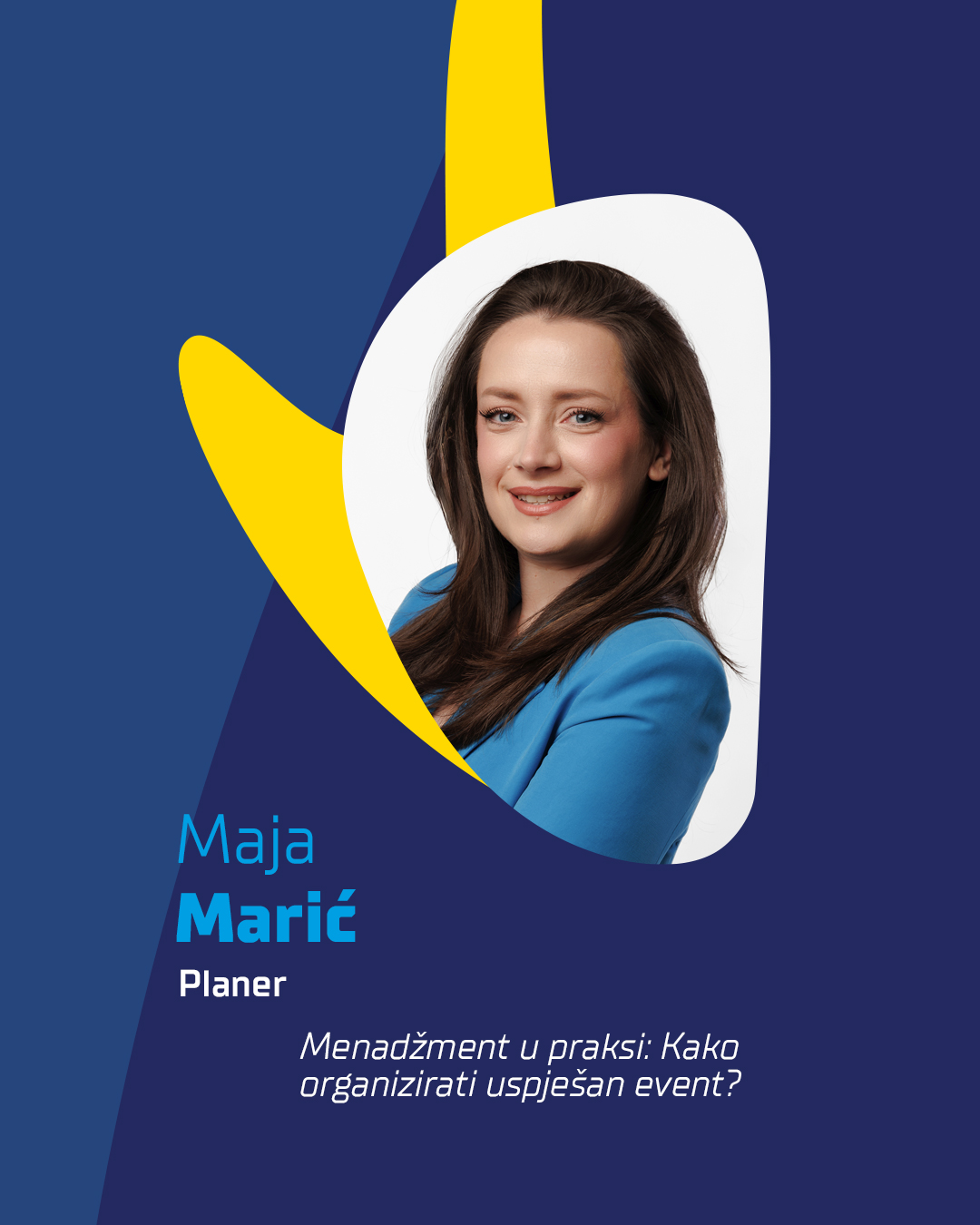 Maja Marić (Planer – Event Management & Consulting) Stručnjakinja za organizaciju događanja s bogatim iskustvom u vođenju i planiranju velikih sportskih natjecanja, konferencija i evenata. Maja Marić vodi agenciju Planer, koja je od 2018. postala sinonim za vrhunsku organizaciju sportskih i korporativnih događanja, gala večera, festivala i promotivnih aktivnosti. Sudjelovala je u organizaciji velikih sportskih natjecanja, uključujući Europska prvenstva, Svjetska prvenstva i prestižne međunarodne sportske događaje. Njezino znanje o event managementu neizostavan je resurs za sve koji žele naučiti kako kreirati nezaboravne sportske događaje.